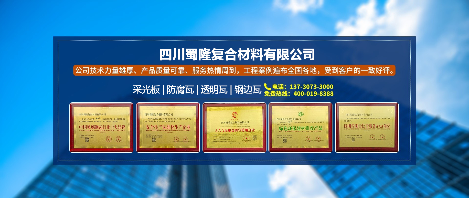 四川蜀隆復合材料有限公司是一家專業從事采光板建材銷售的新型企業,公司位于四川成都。公司銷售采光板品牌引進生產工藝和技術,采用高品質的原材料,外加嚴格的生產管理和質量控制,生產制造出市場上高品...